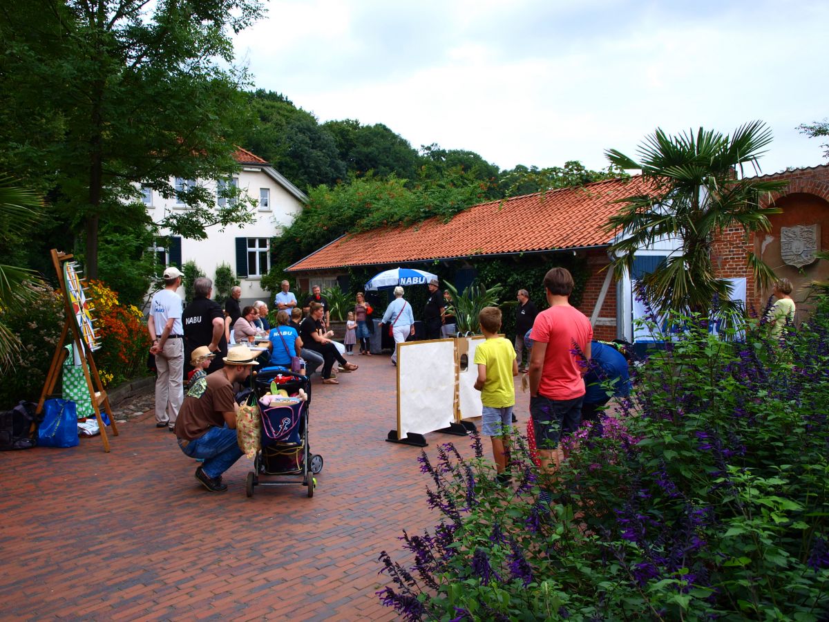 Im Lesepavillion stand der Fledermausschutz im Fokus. Neben der Ausstellung mit Artportraits typischer Oldenburger Nachtschwärmer, Pflanzentipps für einen fledermausfreundlichen Garten und der Einführung in die Echoortung fanden die Besucher hier Exponate und Mitmachstationen: Wann hat man schon mal die Gelegenheit Fledermauskot zu untersuchen oder Echoortung zu betreiben?