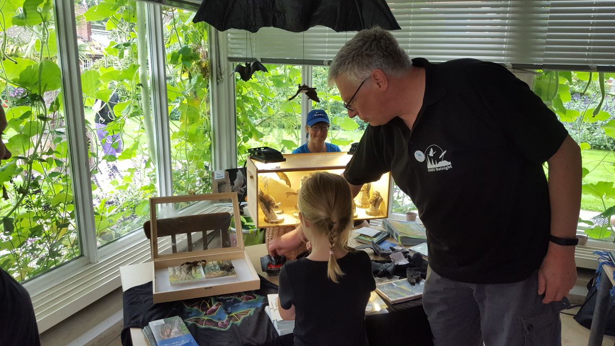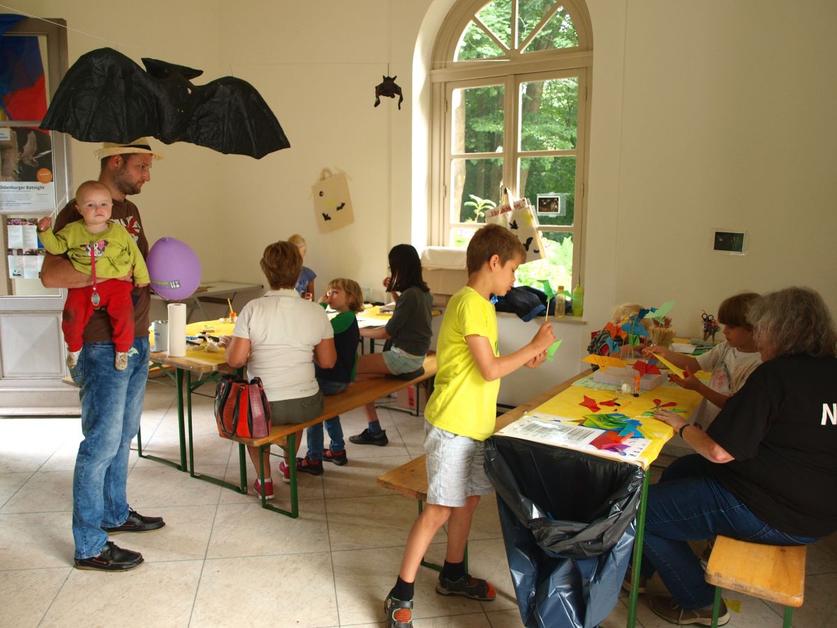 Für die 25 ehrenamtlichen Helfer bedeutete es viel Arbeit im Vorfeld, am Tag selbst und beim Aufräumen – aber es hat sich gelohnt! Der Einsatz reichte vom Erstellen der Artenportraits und Drucksachen, der Beschaffung von Exponaten, dem allgemeinverständlichen Zusammenfassen der Fledermaus-Echoortung in Bild und Ton, über das Schleppen von Infomaterial und Fledermausquartieren, Probebasteln und Motive finden, bis hin zu einem Last Minute Toilettenputzeinsatz und Vielem mehr.