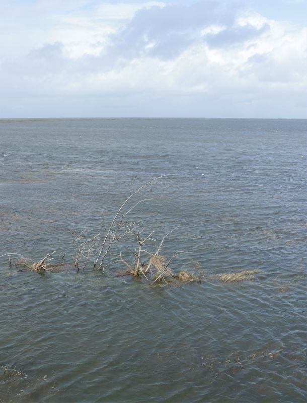 Gestern war der bisher höchste Wasserstand dieser Saison. Der Wind brauste den ganzen Tag mit 8 Beaufort aus Westnordwest über die Insel und trieb das Wasser zum nachmittäglichen Hochwasser höher und höher. Weil es sich in dem Sturm draußen nicht ruhig stehen ließ, schaute ich mit dem Spektiv durch die Hüttenfenster.