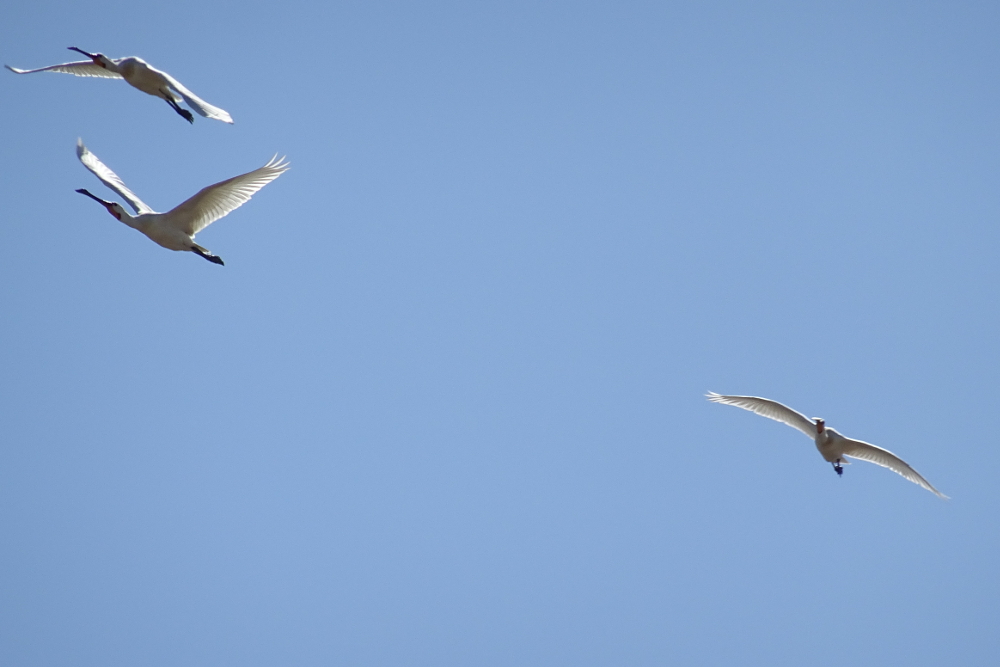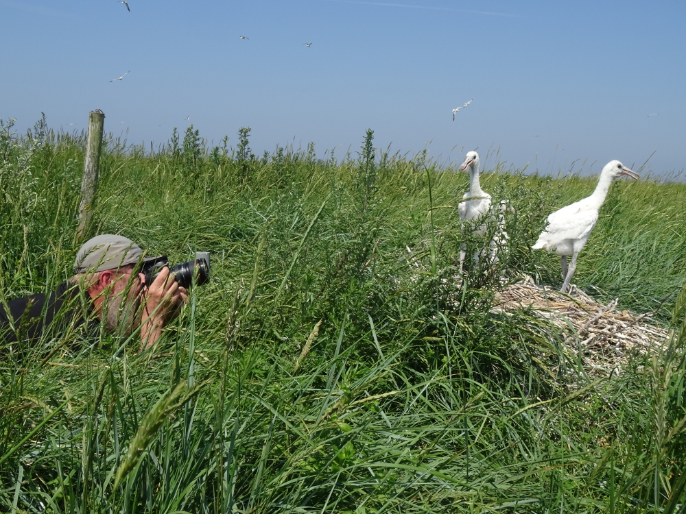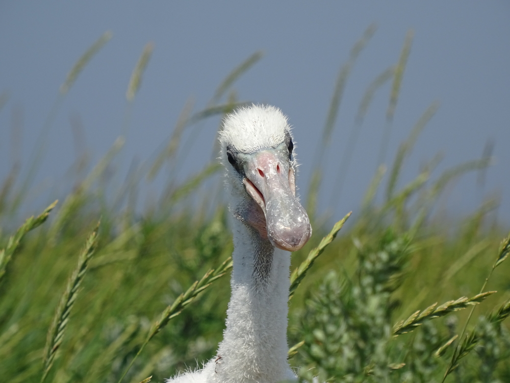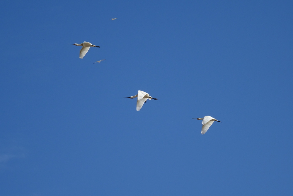 Bedingt durch die Gänsezählung, bewegte ich mich in den Norden der Insel und konnte einen ersten Blick auf die Löffler (Platalea leucordia) werfen! Sie siedeln sich, ganz ähnlich wie in den vergangenen Jahren auch, in der Nähe der Kormorane an. Da die Kolonie aus der Ferne nicht gut einsehbar ist, konnte ich wahrscheinlich nicht alle Individuen sehen: mindestens 78 Löffler habe ich allerdings „erwischt“.