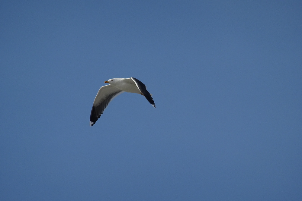 Bei guter Sicht, wenig Wind und sehr sonnigem Wetter flog ein noch junger Seeadler Seeadler (Haliaeetus albicilla) über die Insel hinweg. Er wurde dabei von Silbermöwen so heftig attackiert, dass er schon bald das Weite suchte.
