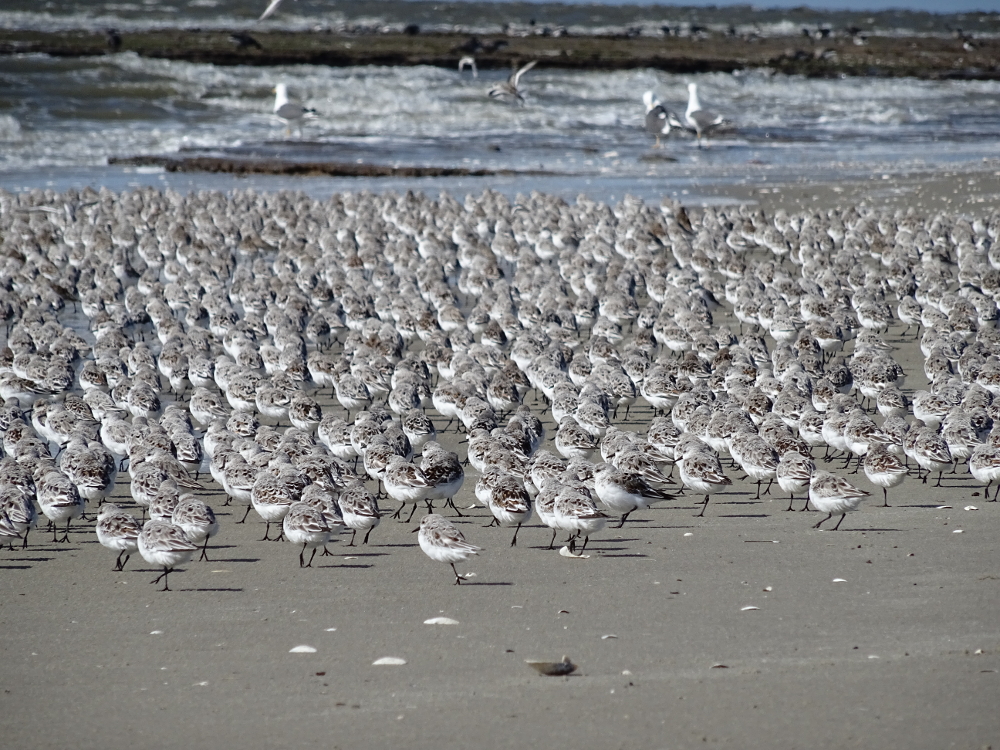 Weiterhin konnte ich einige (min. 2.000 Ind.!) Sanderlinge (Calidris alba) beobachten. Sie sammelten sich ganz in der Nähe des Dünenüberganges, also direkt am Strand vor der Hütte.
