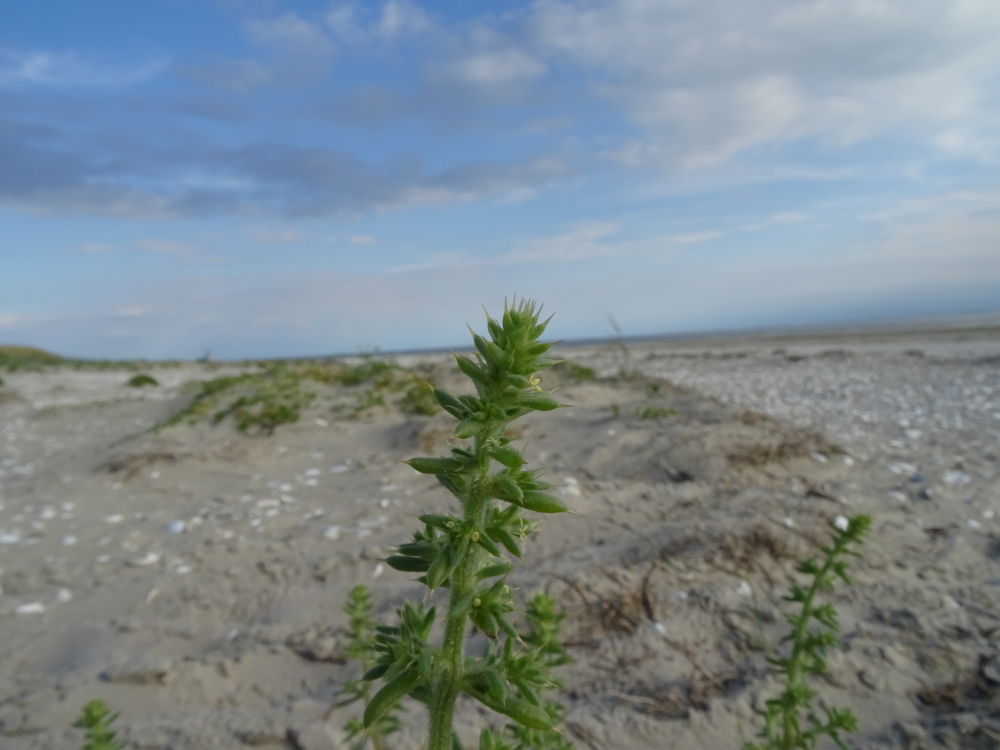 In der Salzwiese entdeckte ich eine bereits verblühte Sonnenblume (Helianthus annuus). Diese Art ist nicht sehr häufig auf Trischen und wurde schon seit vielen Jahren nicht mehr entdeckt. Vermutlich wurde diese Pflanze über Vogelkot, der noch unverdaute Sonnenblumenkerne beinhaltete, auf die Insel getragen. Leider habe ich sie nicht blühend gesehen – denn Sonnenblumen sind besonders hübsch.