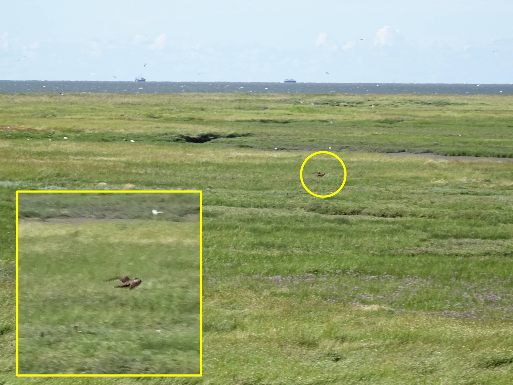 In den vergangenen Tagen beobachte ich immer wieder Greifvögel, die über die Insel ziehen. Meist sind die Merkmale eindeutig zu sehen, sodass eine Bestimmung der Art relativ leicht fällt. Anfang des Monats beobachtete ich dann einen Vogel, bei dem ich mir nicht sicher war um welche Art es sich handeln könnte. Ich schickte ein Bild an verschiedene, ornithologisch bewanderte, Freunde mit der Bitte um Bestimmungshilfe. Das Ergebniss war recht unterschiedlich. Mal wurde der Vogel als Wiesen-, mal als Korn- oder Steppenweihe bestimmt. Ganz eindeutig und klar ist es bis heute nicht. Ich bedanke mich auf jeden Fall für die rege Beteiligung und die raschen und z.T. sehr ausführlichen Antworten!
