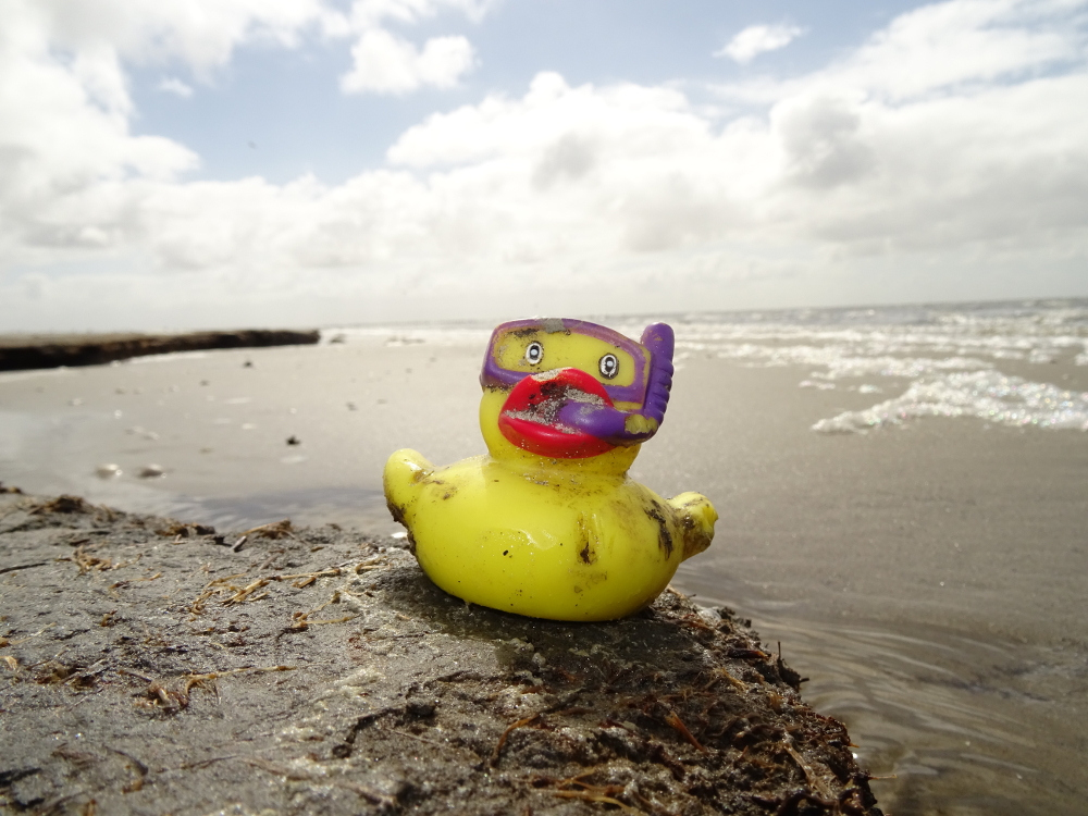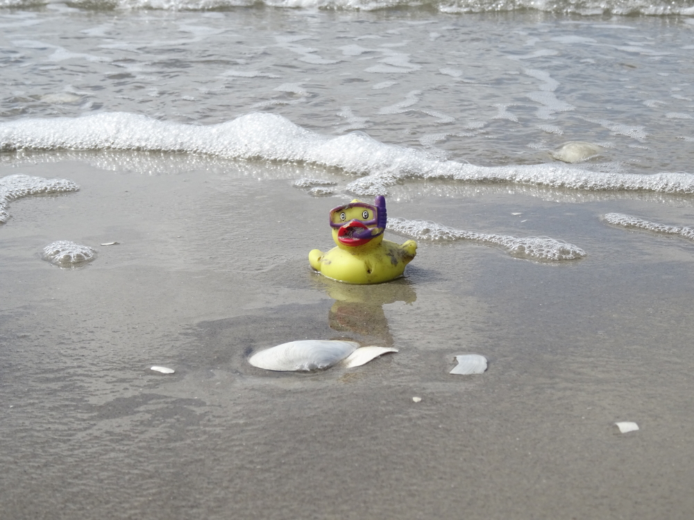 Badeenten sind weltweit verbreitet, die Brutgebiete befinden sich meist in China und Fernost. Es wird von Massenschlupf-Ereignissen berichtet, bei dem bis zu 100.000 Individuen in relativ kurzer Zeit schlüpfen. Badeenten sind reine Gummivögel, die sich nur sehr selten fliegend, und wenn dann meist passiv, fortbewegen. Die meiste Zeit ihres Lebens verbringen sie am Beckenrand von Badewannen, in Supermarktregalen oder auf Containerschiffen. Ich entdeckte eine Badeente bei der letzten Springtidenzählung am Nordstrand in der Brandung schwimmend. Da die Enten schaumiges Wasser bevorzugen, war es zumindest nicht verwunderlich, dass sie sich in der Brandungszone, inmitten des Meerschaumes aufhielt.