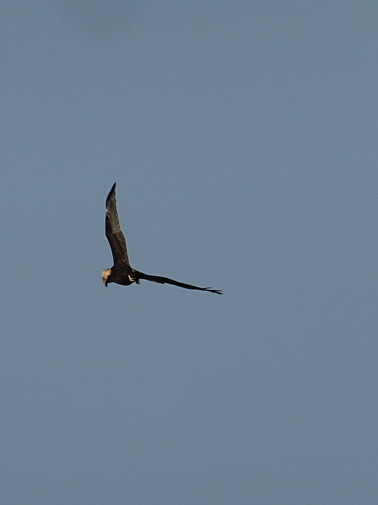 Seeadler (Haliaeetus albicilla) an der Südspitze! Eine weibliche Rohrweihe (Circus aeruginosus) ist zweimal an der Hütte vorbeigeflogen.