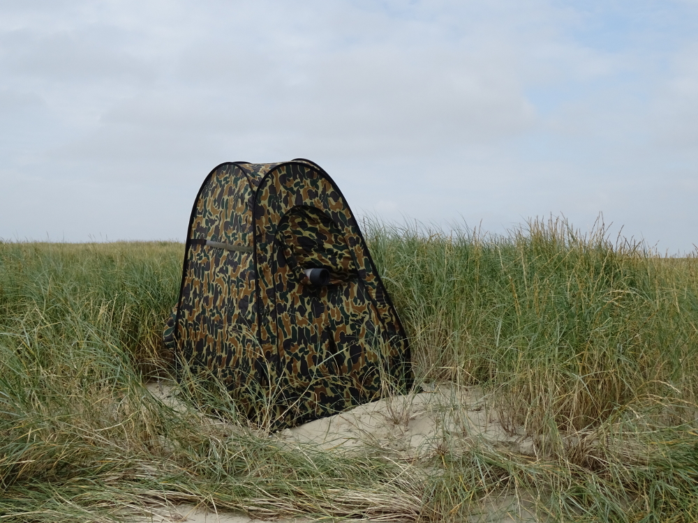 Heute hatte ich zudem einige Zufallsbeobachtungen: Ein Wintergoldhähchen hätte mich beinahe umgeflogen, so schnell kam es um die Hausecke geschossen. Dann habe ich eine weibliche Kornweihe gesehen, die an der Hütte vorbeiflog, einen Buchfink, der mich besuchte, sechs dicke Eiderenten, welche man von weither hören konnte und zu guter Letzt noch einen Wanderfalken, der auf einem Pfahl bei der Düne saß. Es war ein sehr schöner erster Samstag auf Trischen.