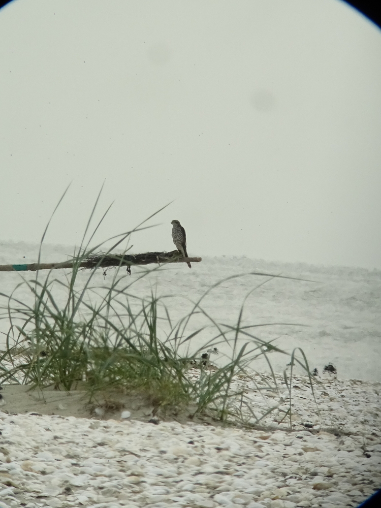 Ein Seeadler (Haliaeetus albicilla) zog über der Insel seine Kreise und schraubte sich immer höher und höher. Ein Wanderfalke (Falco peregrinus) – vermutlich derselbe, wie am 8. Oktober, attakierte den großen Greifvogel und schlug ihn in die Flucht. In den letzten Tagen beobachte ich nahezu täglich einen Wanderfalken am Strand.