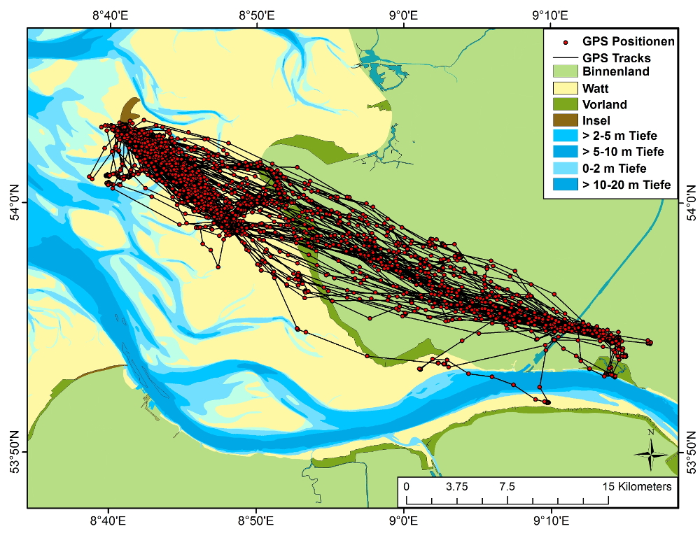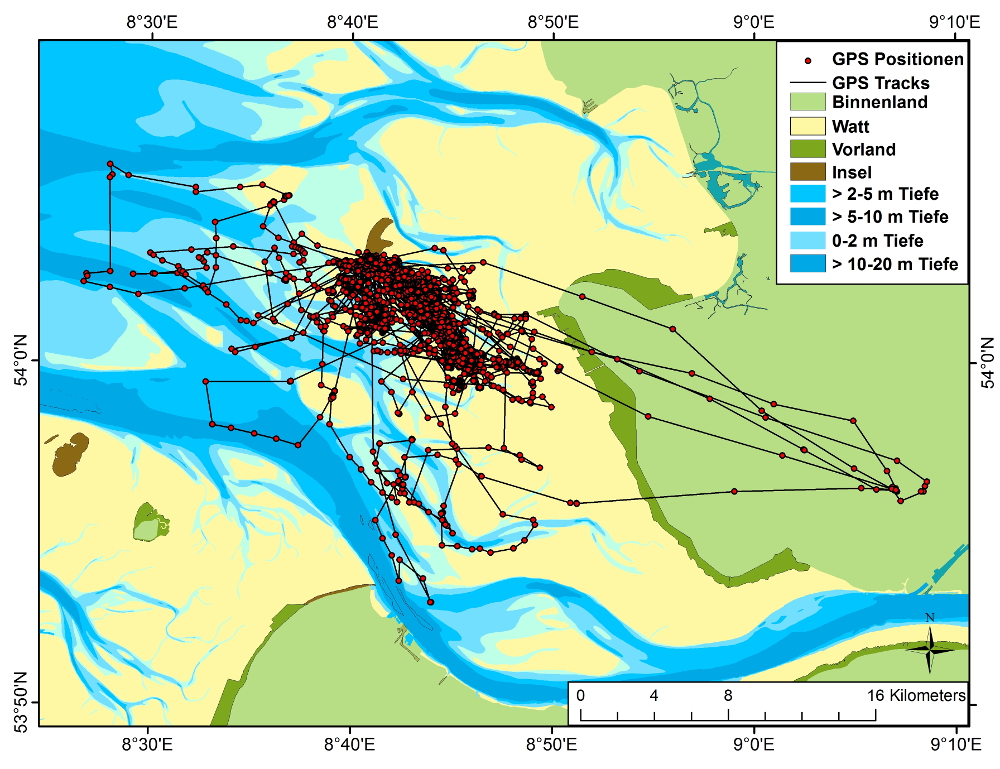 Um Antworten auf diese Fragen zu finden, wird moderne Technik eingesetzt: GPS-basierte Logger. Die nur wenige Gramm schweren Geräte werden mithilfe eines speziellen Rucksack-Systems an die Tiere angebracht. Die Tiere tragen diesen kleinen „Rucksack“ mit sich und übermitteln per GPS punktgenaue Positionsdaten an die Wissenschaftler in Büsum. GPS-Logger werden also eingesetzt um das Verhalten von Tieren in Raum und Zeit zu analysieren.