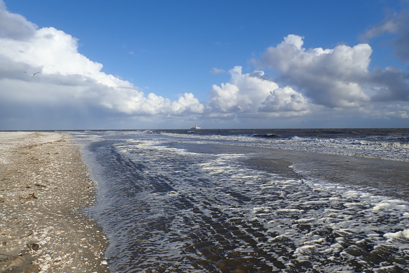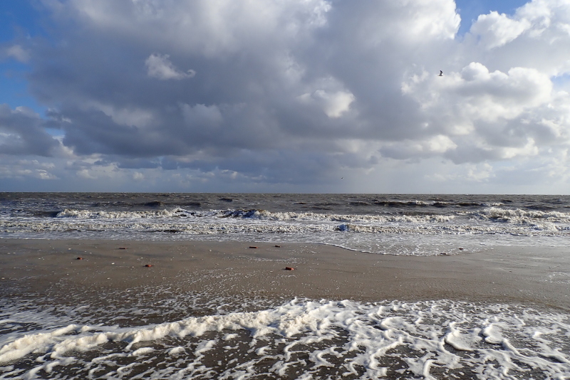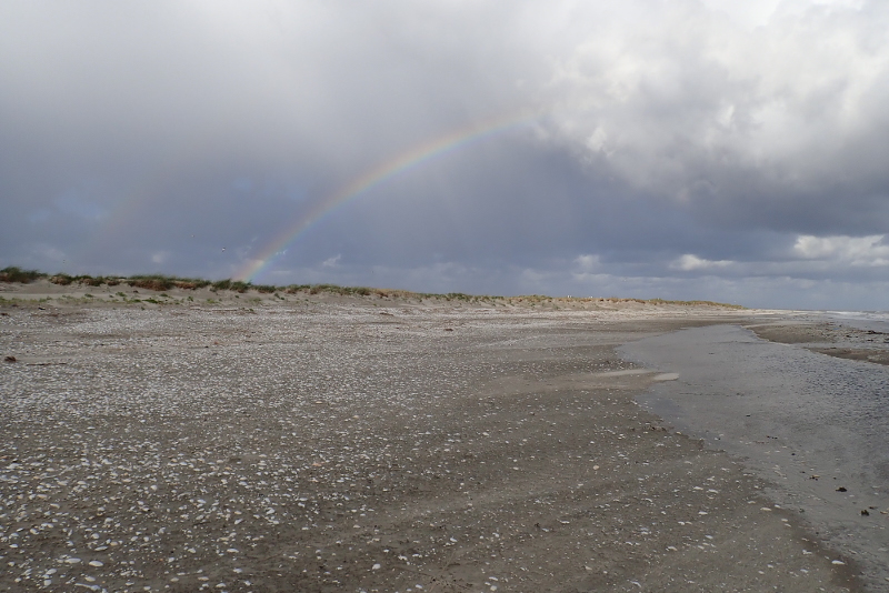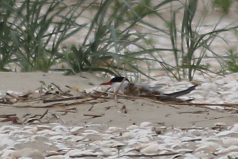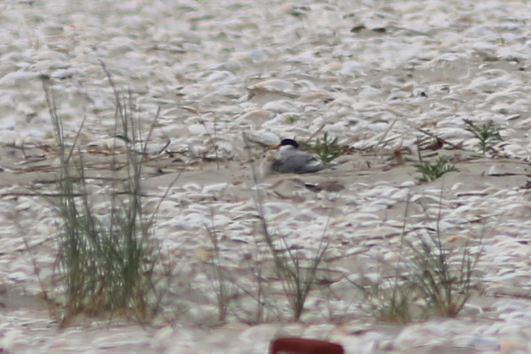 Doch die Kolonie war verlassen, wie leer gefegt. Weder Küken noch Eier waren zu finden und nur eine Hand voll Seeschwalben flog umher. Aber auch diese hatten wohl keinen Nachwuchs mehr zu versorgen, denn sie warnten nicht, als ich mich der Kolonie nähert, um mir ein Bild von der Lage zu machen. Wo ich Mitte Juni vom Watt aus mit dem Spektiv noch beobachten konnte, wie Zwerg-, Küsten-, und Flussseeschwalben ihre kleinen Küken fütterten und huderten, waren an derselben Stelle jetzt bloß Sand, Muscheln, Treibsel und ein paar Eierschalen zu finden.