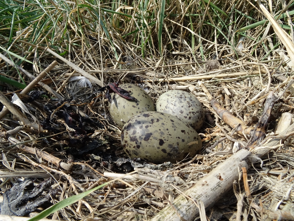 - Die ersten Vollgelege lassen sich finden. Hier handelt es sich um ein Gelege von Silber- oder Heringsmöwen.
