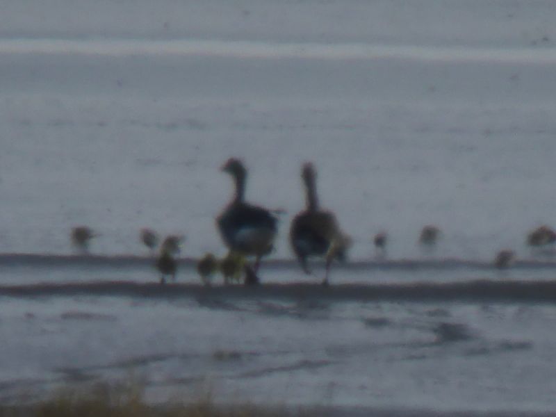 Der Nordostwind hat auch Trischen kalt erwischt, so zeigte das Thermometer heute früh nur 4°C. Trotzdem habe ich heute den ersten Inselnachwuchs der Saison erblickt: Gestern habe ich noch ein BIld eines Graugansnestes gezeigt. Heute ist bereits die erste Familie mit mindestens vier Gösseln in der Düne unterwegs gewesen. Bevor ich meine Kamera soweit hatte, sind sie aber leider schon wieder in der Vegetation verschwunden.