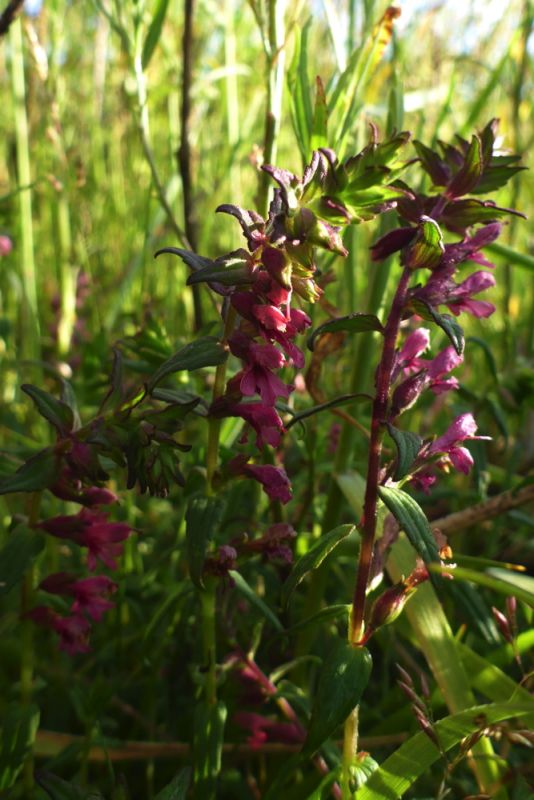 Auch der rote Zahntrost war eine Arzneipflanze und kann man sich schnell herleiten, welches Leid er trösten sollte. Es ist ein sogenannter Halbparasit. Das bedeutet, dass Pflanze zum einen parasitisch lebt (auch so was gibt es bei Pflanzen), sich zum anderen aber auch noch selbst versorgen kann. Konkret „zapft“ der Zahntrost über die Wurzeln andere Pflanzen, vor allem Gräser, an und lebt auch von deren Zuckern und Nährstoffen. Aber er ist noch nicht vollkommen auf seinen Wirt angewiesen, sondern hat auch noch grüne Blätter und kann so auch selbst Zucker produzieren.