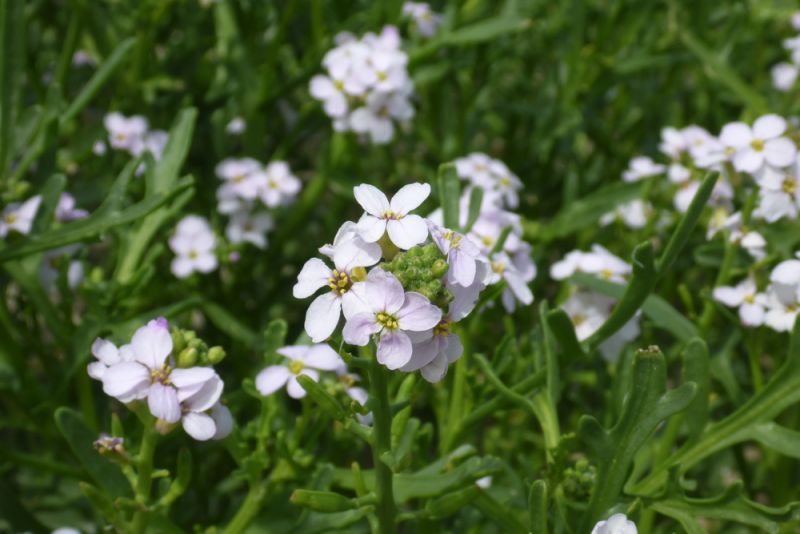 Zu guter letzt am Strand angekommen blüht der Meersenf (diesmal der echte, Cakile maritima) weiß mit einem Hauch blau-violett.
