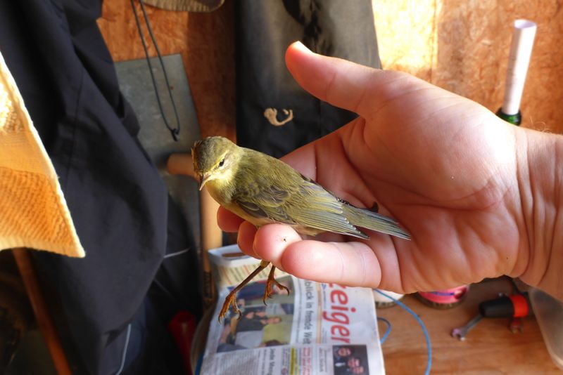 Ab Anfang September kamen dann Mittelstreckenzieher hinzu. Diese ziehen nur bis ins Mittelmeergebiet. Mönchsgrasmücke (Sylvia atricapilla) gehören z. B. dazu. Sie ziehen nur teilweise bis südlich der Sahara. Viele überwintern im Mittelmeergebiet oder bereits in England. Da sie auch Nachtzieher sind, sieht man sie tagsüber in Büschen nach den letzten Insekten oder Beeren suchen. Manch Vogel suchte aber auch in der Hütte nach Nahrung, fand nicht mehr selbst hinaus und musste händisch vor die Tür gebracht werden.