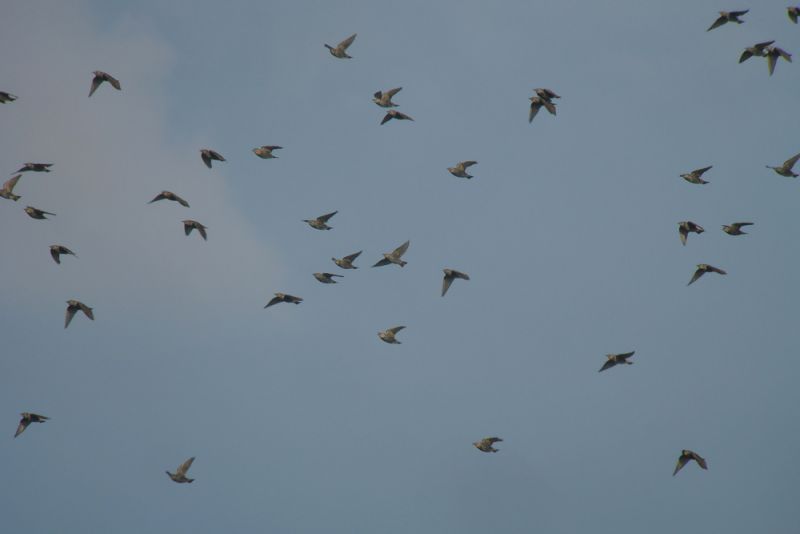 Schließlich Kommen auch Kurzstreckenzieher durch. Zu diesen kann man viele Wiesenpieper (Anthus pratensis) zählen, da sie von der Nordseeküste bis zum Mittelmeer überwintern, wobei die hiesigen Brutvögel nach Südwesten ausweichen und skandinavische Brutvögel schon an der Nordsee halt machen. Zu dieser Zeit mischen sich auch immer mehr Strandpieper (Anthus petrosus) unter die Wiesenpieper. Sie zieht es an die Atlantikküste. Der Zug der Pieper lässt sich an der Küste besonders gut beobachten, da sie besonders vormittags in lockeren Trupps übers Grünland ziehen. An guten Zugtagen folgt dann Trupp auf Trupp.