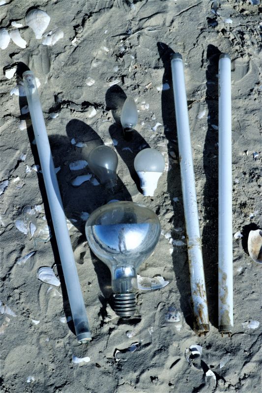 Negativ-Highlights waren Halogenröhren und Glühbirnen, eine Sandkiste aus Plastik, ein Autoreifen, ein Riesenrohr, über 40 Plastikflaschen, eingepackter Schinken, auffällig viel Hundespielzeug, Sardinen in der Dose, sehr viele Netzreste und der berühmte Kühlschrank. Von Letzterem berichtete ich bereits vor einiger Zeit. Er wurde in der Nähe des Dünenübergangs angespült. Das Meer half mit beim „Tragen“ Richtung Südspitze, von wo der Abtransport ans Festland stattfinden wird. Bei jedem Hochwasser das ca. 50 cm über normal auflieft, wurde der Kühlschrank mit der Strömung ein Stück gen Süden getragen. Somit war mein Sammelpunkt vorgegeben und ich machte mich mit dem Handkarren ans Werk.