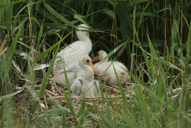 Die Geschichte des Löfflerbestandes sah übrigens nicht immer so rosig aus wie in den letzten zwei Jahrzehnten. Im 19. Jahrhundert brüteten im Rheindelta und an der Küste der Niederlande tausende Löffler-Paare. Dieser Bestand erlebte im Zuge eines großflächigen Lebensraumverlustes und durch den Einsatz von Pestiziden in der Landwirtschaft eine rasante Talfahrt, bis 1969 nur noch 150 Paare dort brüteten (Gedeon et al. 2014). Erst durch ein Verbot von Pestiziden sowie intensive Schutzbemühungen konnte eine Kehrtwende dieser Entwicklung erreicht werden, so dass siche der Bestand wieder erholte und bis auf 2300-2500 Brutpaare in den Niederlanden anwuchs.