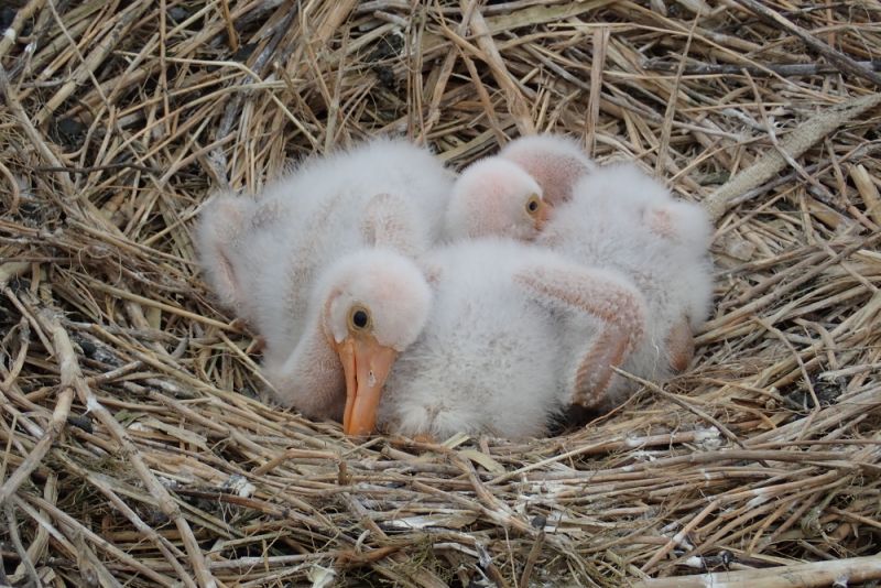 Im Rahmen der Koloniekontrolle am 03. Juni wurden die Nester, Jungvögel, Küken und Eier gezählt, sowie 20 der 260 Jungen zu wisschenschaftlichen Zwecken beringt. Wie bereits einige ihrer Eltern, Großeltern und Urgroßeltern (…) tragen sie nun individuelle Farbring-Kombinationen, die es ermöglichen, kostbare Daten über ihr Leben, ihr Verhalten, ihre Wanderungen oder mögliche Umsiedlungen zu sammeln.