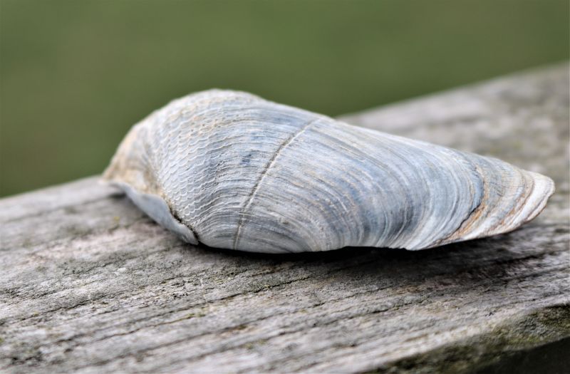 Trischens Strand liegt voll von Muschelschill. Sandklaffmuscheln, Schwertmuscheln, Herzmuscheln und Miesmuscheln sind vermutlich vielen bekannt. Auf diesem Foto ist die Krause Bohrmuschel zu sehen. Besser gesagt, eine Hälfte der Schale eben dieser. Die Bohrmuschel kann sich, wie ihr Name vermuten lässt, in Torf, weichen Fels oder manchmal auch in Holz hinein bohren. Dies gelingt ihr dank der Zähnchen, die sich auf der Schale befinden. Mit der Zähnchenseite voran also, bohrt sie sich tief hinein. Das Hinterende mit dem Siphon ist der Öffnung der Bohrung zugewandt, sodass die Muschel frisches, nährstoffreiches Wasser filtern kann und gleichzeitig vor Fressfeinden gut geschützt ist. Die meisten Muscheln haben einen Grabefuß um sich im Wattboden tiefer zu graben. Die Bohrmuschel setzt ihn in Kombination mit den Zähnchen und ihrem Schließmuskel ein, um sich tiefer in das harte Etwas zu graben. Wie ein Bohrer dreht sie sich um die eigene Achse. Nur eben im „Muschel-Tempo“. Für eine Umdrehung muss die Krause Bohrmuschel bis zu 30mal neu ansetzen und ihre Abfolge von Grabefuß- und Schließmuskelbewegung immerzu wiederholen.