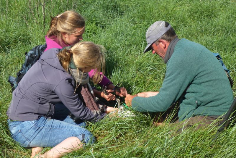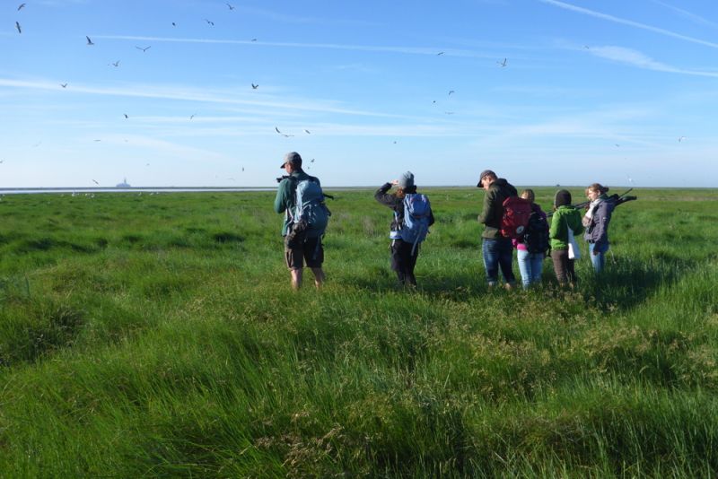 Löffler sind Koloniebrüter, die hier im Wattenmeer auf dem Boden brüten und das möglichst sicher vor Bodenraubtieren auf Inseln und Halligen. Das macht die Erfassung relativ einfach. Um möglichst schnell fertig zu sein und die Kolonie wieder zu verlassen, nehme man mehrere Personen, bilde eine Kette und gehe geordnet durch die Kolonie. So lässt sich schnell die Anzahl der Nester, was der Anzahl der Brutpaare entspricht, und Küken zählen. Zum Beringen umkreise man schließlich eine Gruppe fast flügger Küken und greife nacheinander Küken heraus. Diese erhalten dann eine Kombination von sechs Ringen. Ein Ring ist ein klassischer Metallring mit einer einmaligen Nummer der Vogelwarte. Die anderen Ringe sind aus farbigen Kunststoff und einer trägt eine etwas länger „Fahne“. So erhält jeder beringte Vogel eine eindeutige Farbringkombination, mit der er fürs restliche Leben erkannt werden kann und wichtige Daten für die Wissenschaft liefert. Also: Halten auch Sie die Augen offen. Die Vogelwarten freuen sich über jede Meldung.