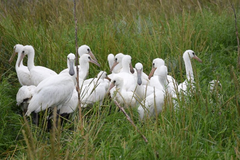 die Zeichen standen schlecht. Wie schon berichtet, gaben die Löffler (Platalea leucorodia) Anfang Juni aus ungeklärten Ursachen ihre ursprüngliche Kolonie auf, woraufhin nur wenige Paare an anderer Stelle eine Nachbrut begonnen hatten. Hinzu kam die sehr unbeständige nass-kalte Witterung der letzten Zeit. Wie wirken sich also das schon bereits sehr fortgeschrittene Jahr und die Wetterbedingungen auf die Kükenentwicklung und damit auch den Bruterfolg der Löffler aus?