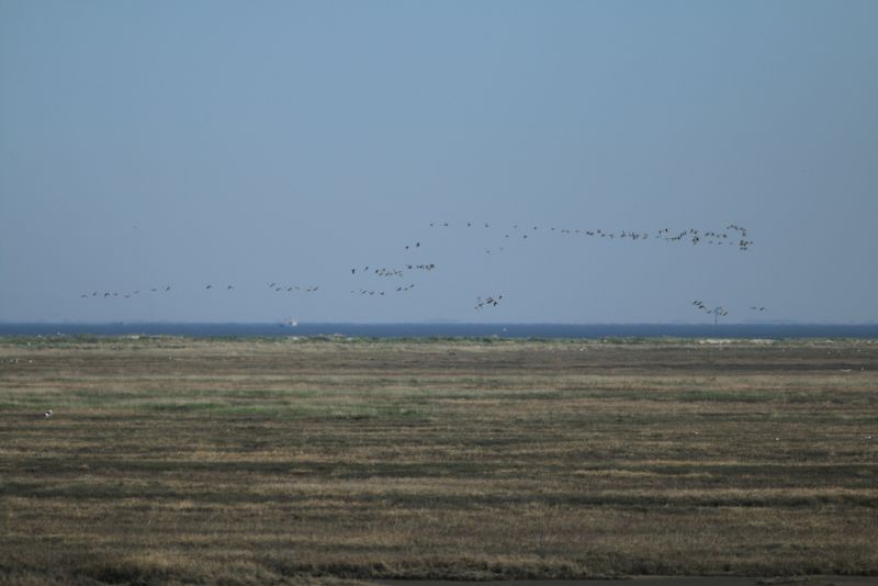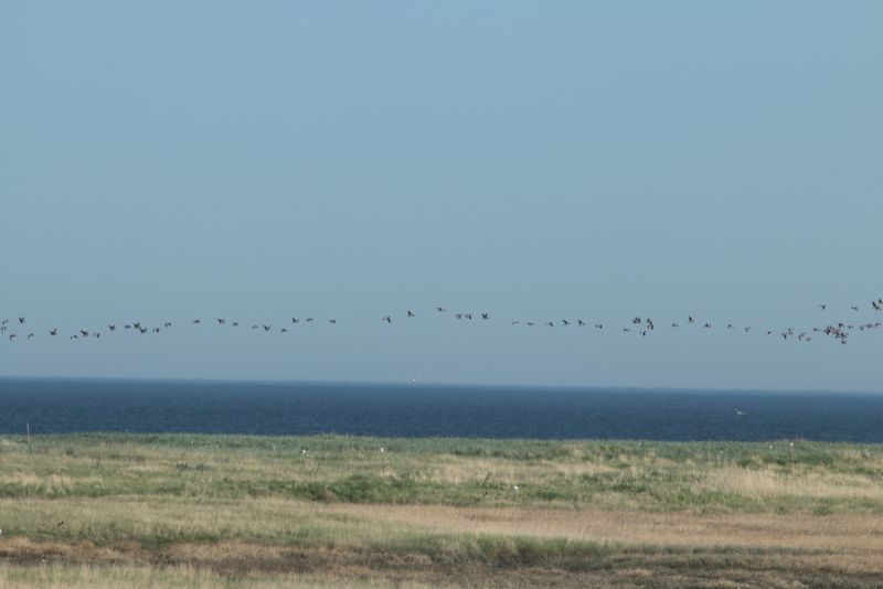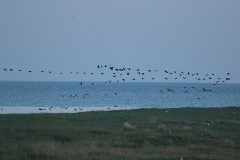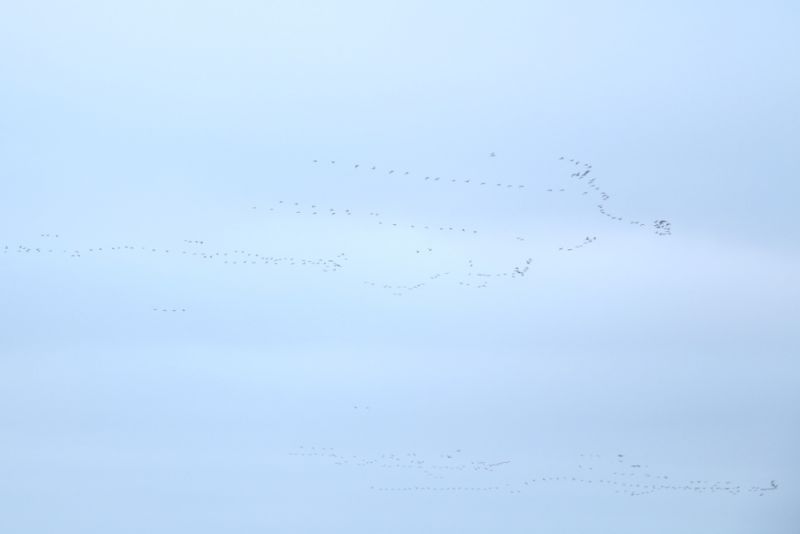 Massenzugtage wie diese sind ein atemberaubendes Spektakel. Das Gefühl, wenn innerhalb weniger Minuten tausende rufende Gänse überfliegen, ist nur schwer zu beschreiben. Es ist eine Mischung aus Ehrfurcht, Überwältigung, Sehnsucht und Reiselust – Gänsehaut pur. Die großen Schwärme während des Vorbeifluges möglichst exakt zu erfassen, artet jedoch nahezu in Stress aus. Zeitweise flogen direkt über mir, im Norden der Insel und im Süden ununterbrochen große Schwärme sowohl hoch am Himmel als auch flach über dem Wasser.