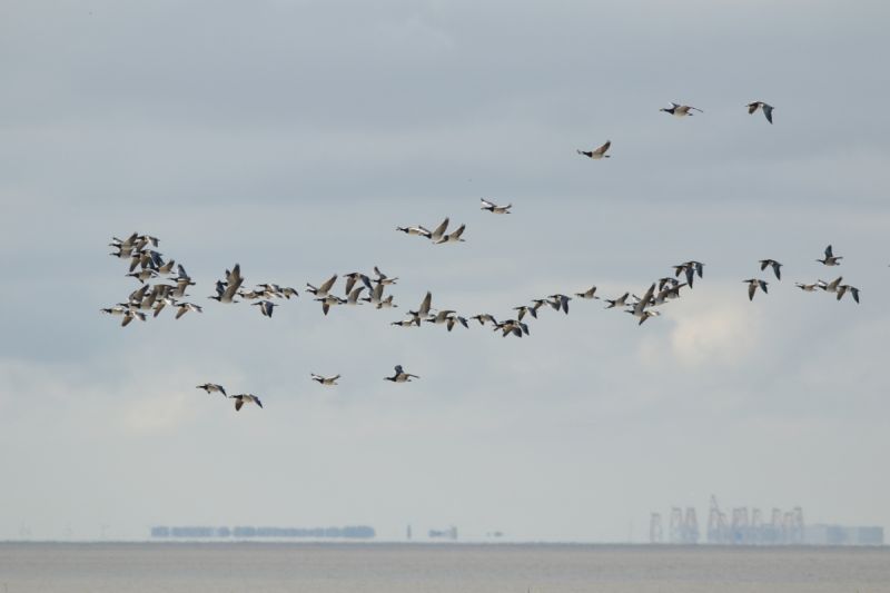 Massenzug der Weißwangengänse über Trischen