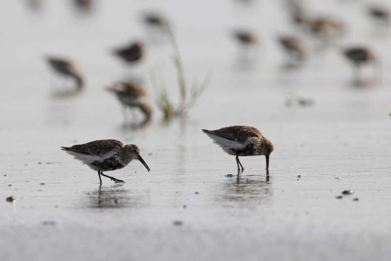 Doch sobald das Wasser wieder abläuft und die ersten Wattflächen wieder frei sind, geht das große Fressen weiter. Einige Arten wie Alpenstrandläufer, Sanderlinge und Sandregenpfeifer (Calidris alpina, C. alba, Charadrius hiaticula) laufen sofort los, dem ablaufendem Wasser hinterher, und beginnen mit der Nahrungssuche. Andere Arten wie beispielsweise Austernfischer, Pfuhlschnepfen oder Knutts (Haematopus ostralegus, Limosa lapponica, Calidris canutus) ruhen noch ein wenig, um schließlich zu ihren weiter entfernten Nahrungsgründen fortzufliegen.
