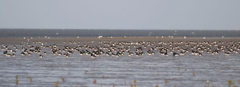 Hohe Wasserstände und Sturm aus westlicher Richtung ließen die Rastvögel auf Trischen in den letzten Tagen dichter zusammenrücken – Ein wahres Spektakel auf der Vogelinsel Trischen im Weltnaturerbe Wattenmeer.