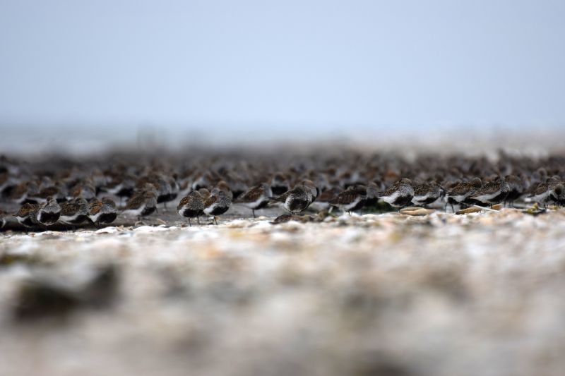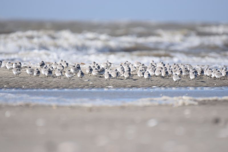 - Eine Meute Sanderlinge (Calidris alba)