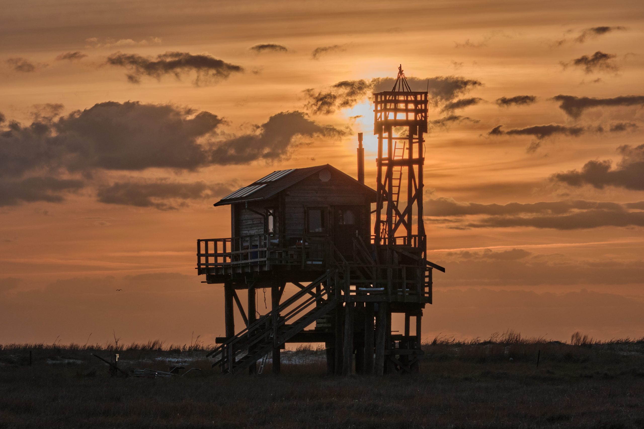 - Trischen-Hütte im flimmrigen Licht