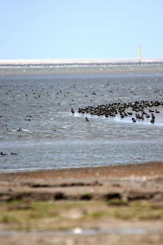 - Eiderenten tummeln sich an Prielkante
