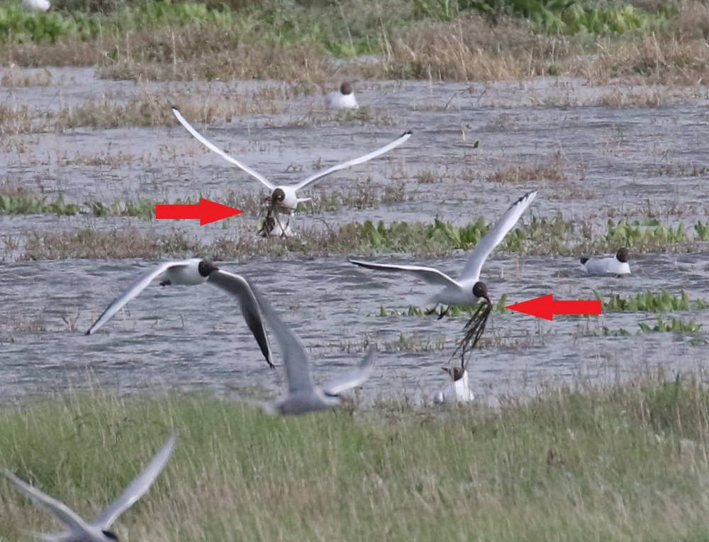 Bild 2: Lachmöwen tragen Nistmaterial ein.