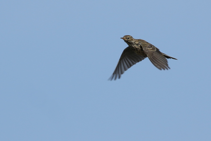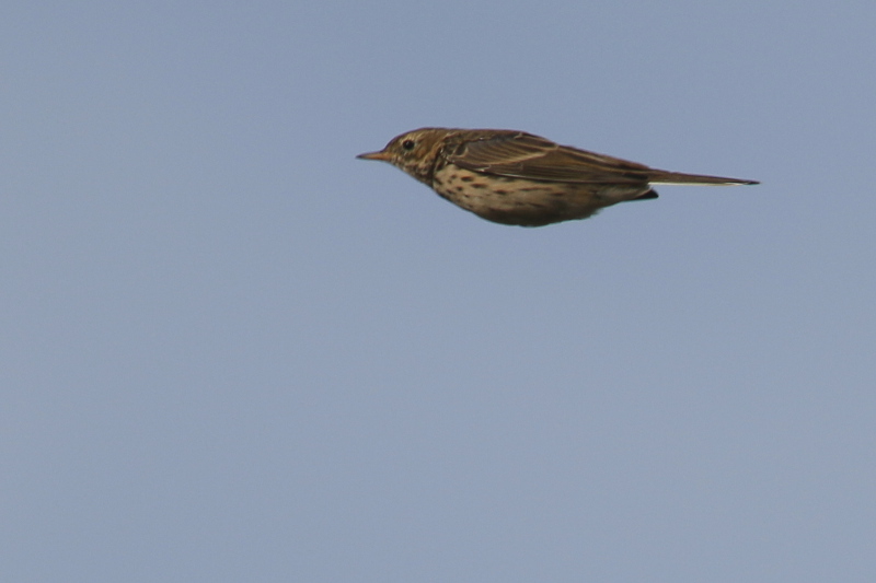 Zur Zeit sind es vor allem Wiesenpieper, die in lockeren Trupps die Insel überqueren, noch einige Schafstelzen und schon die ersten Strandpieper, Buchfinken und Erlenzeisige sind dabei. Zwischendurch ziehen immer wieder Pfeif-, Krick- und Speißenten am Horizont entlang und mit etwas Glück bekomme ich auch die Merline mit, die blitzschnell über den Dünenkamm zischen. Sie alle werden gezählt, die Zugrichtung wird bestimmt und ihre Flughöhe abgeschätzt. Am Ende der Saison ergibt das hoffentlich einen schönen Datensatz, der das Zuggeschehen über Trischen widerspiegelt.
