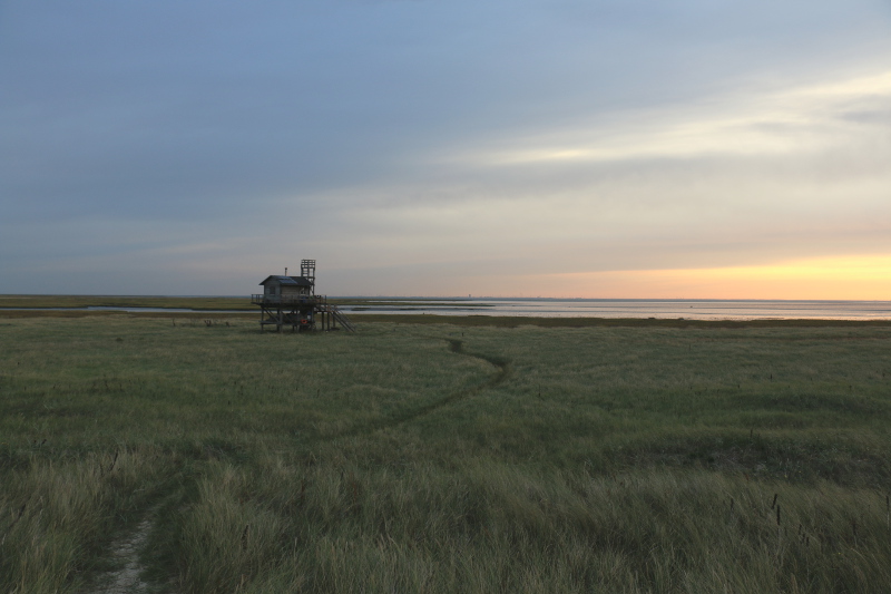 Wenn die Sonne über der Meldorfer Bucht aufgeht, beginnt für mich die Arbeit. Die ersten Stunden des Tages erfasse ich nach einer standardisierten Methode den von der Hütte aus wahrnehmbaren Vogelzug. Für die Vögel geht es nun wieder zum Überwintern in den Süden. Wer dabei an Trischen vorbeikommt, landet – zumindest als Notiz – in meinem Notizbuch.