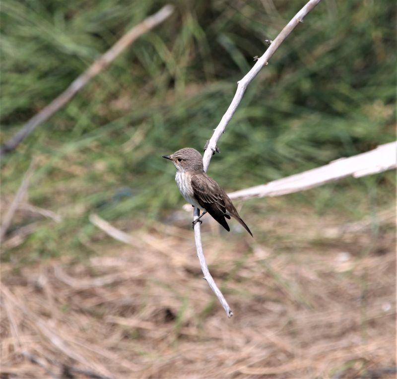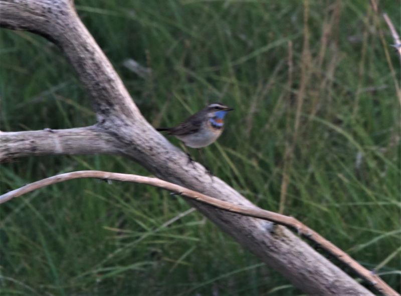 Doch damit nicht genug. Erneut musste Multitasking her, denn die Insekten hatte viele kleine Singvögel angelockt. So schaute ich zwischendurch immer wieder in das Lockgebüsch oder auf dem Geländer des Hüttenumlaufs nach. Neben Dorngrasmücken, Gartengrasmücke, Steinschmätzern, einem weiblichen Trauerschnäpper und Fitissen konnte ich das erste Mal in dieser Saison einen Grauschnäpper und einen Gelbspötter beobachten. Und dann tauchten auch noch zwei Arten auf, die Trischen nicht jedes Jahr einen Besuch abstatten: Ein männliches Blaukehlchen, das so plötzlich wie es gekommen war auch wieder verschwand, und ein Waldlaubsänger der äußerst neugierig und fotogen war. Und zwischendurch immer wieder die Weißwangengänse…..